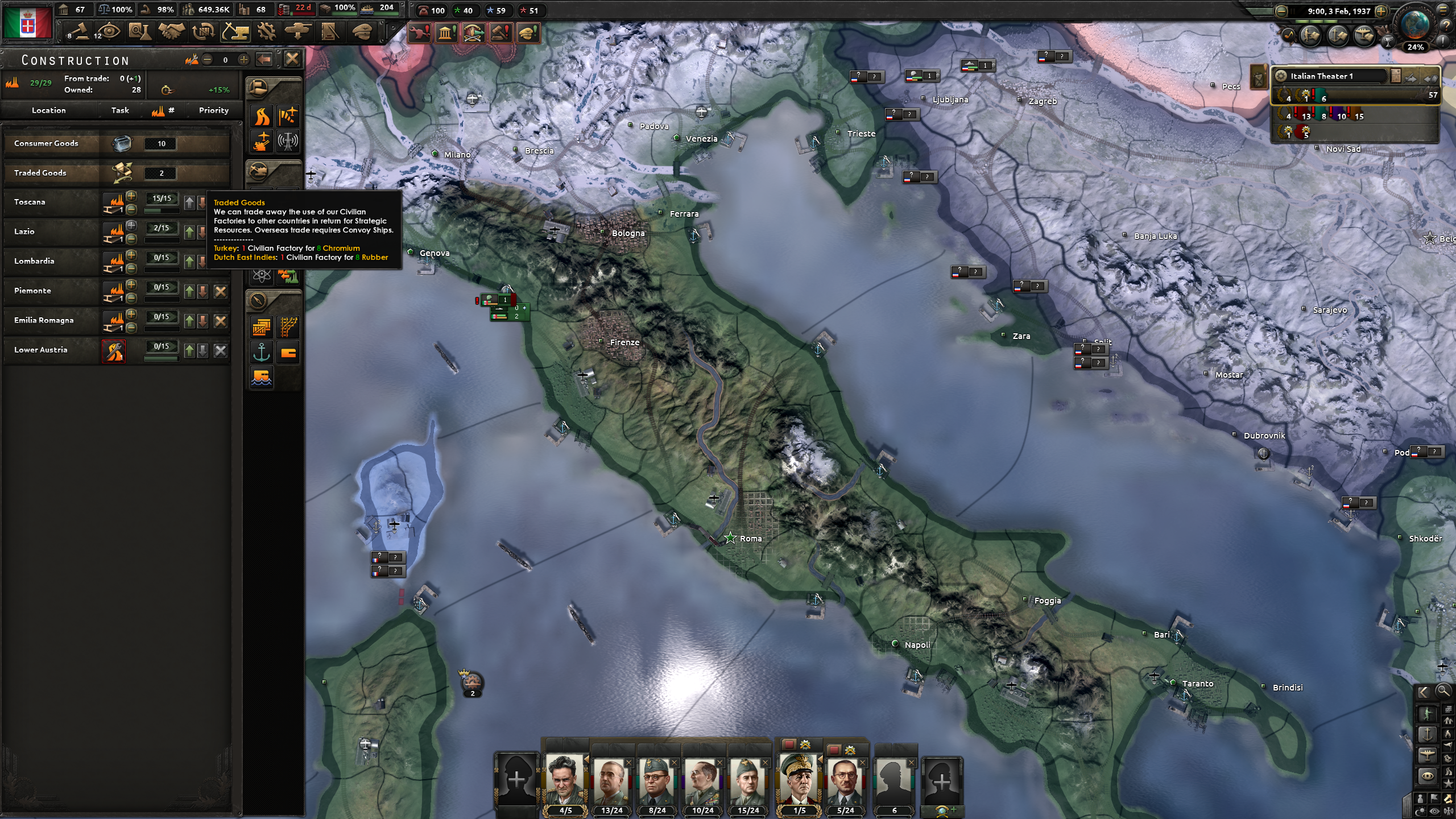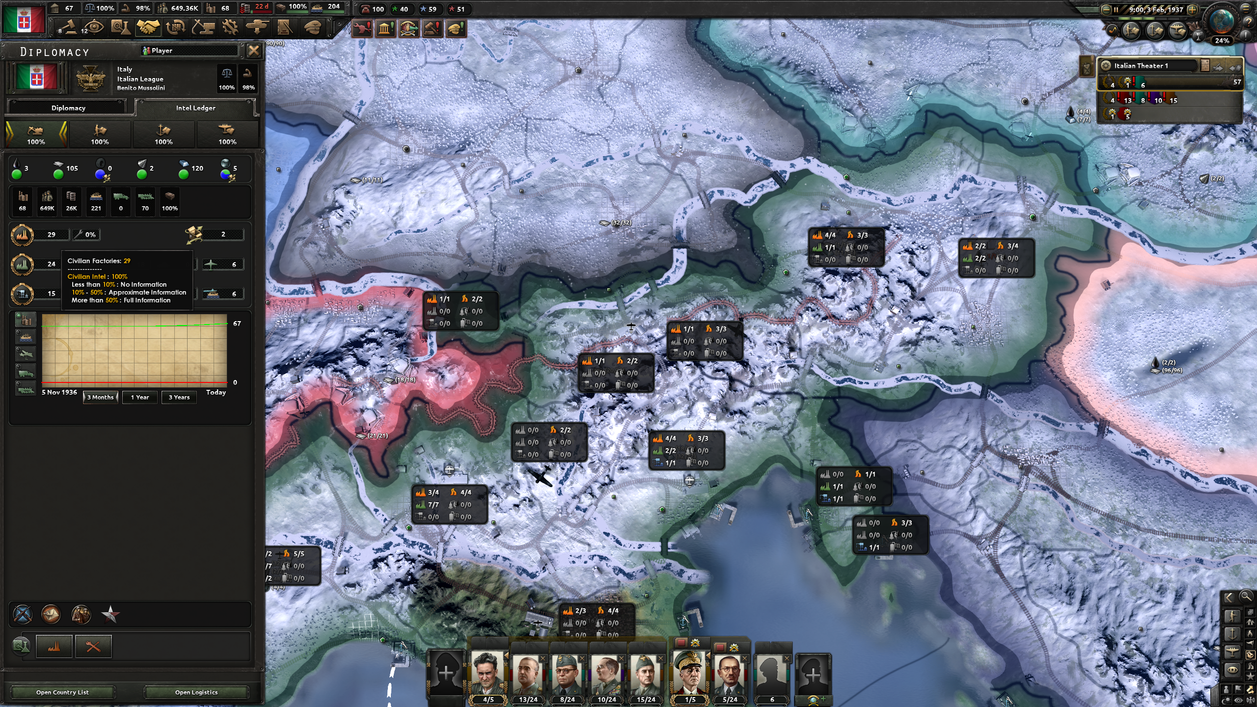 少々分かり難いが、空軍はイタリアはそれなりに初期で保持している。空軍の移動は非常に高速なので
