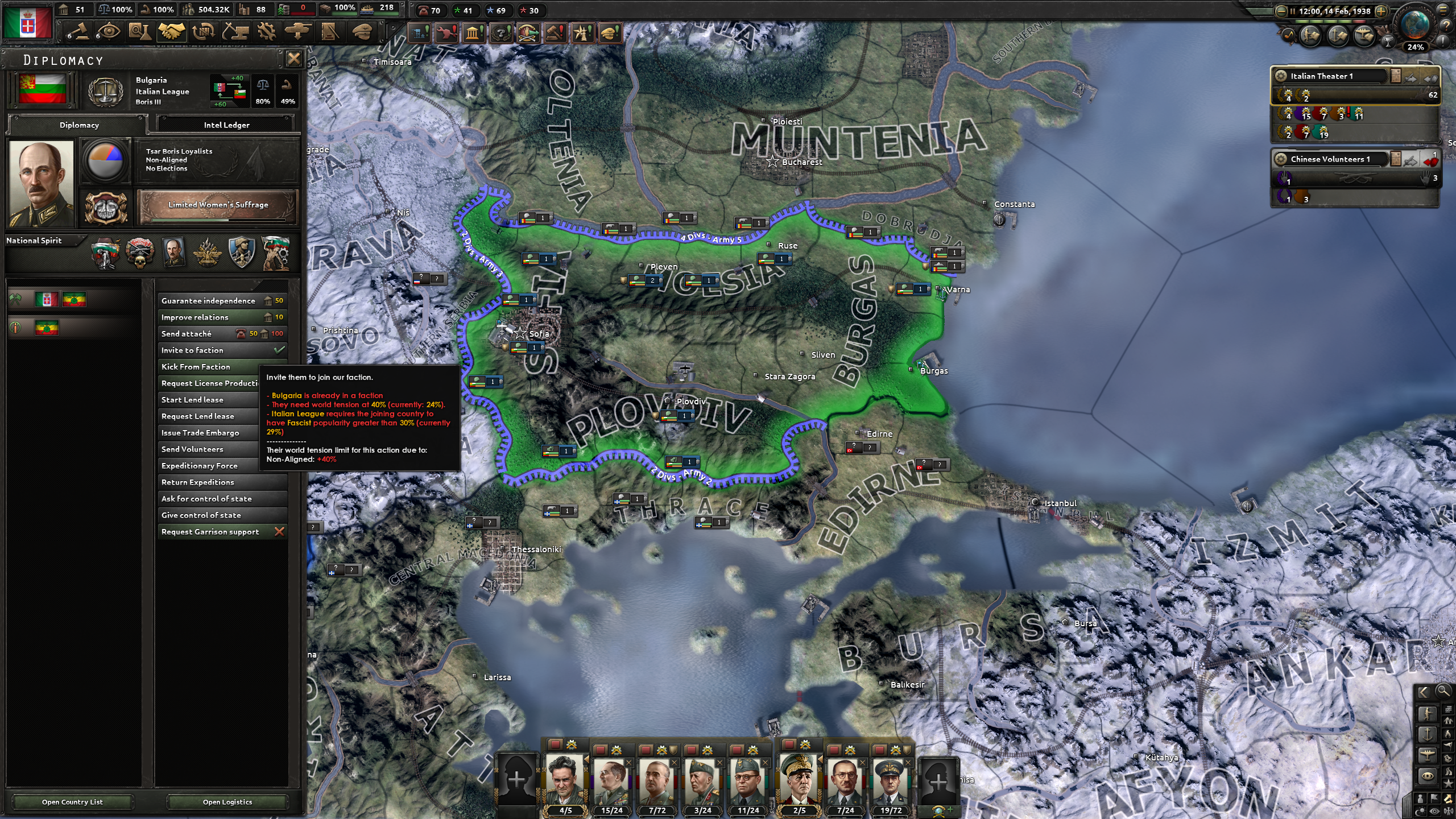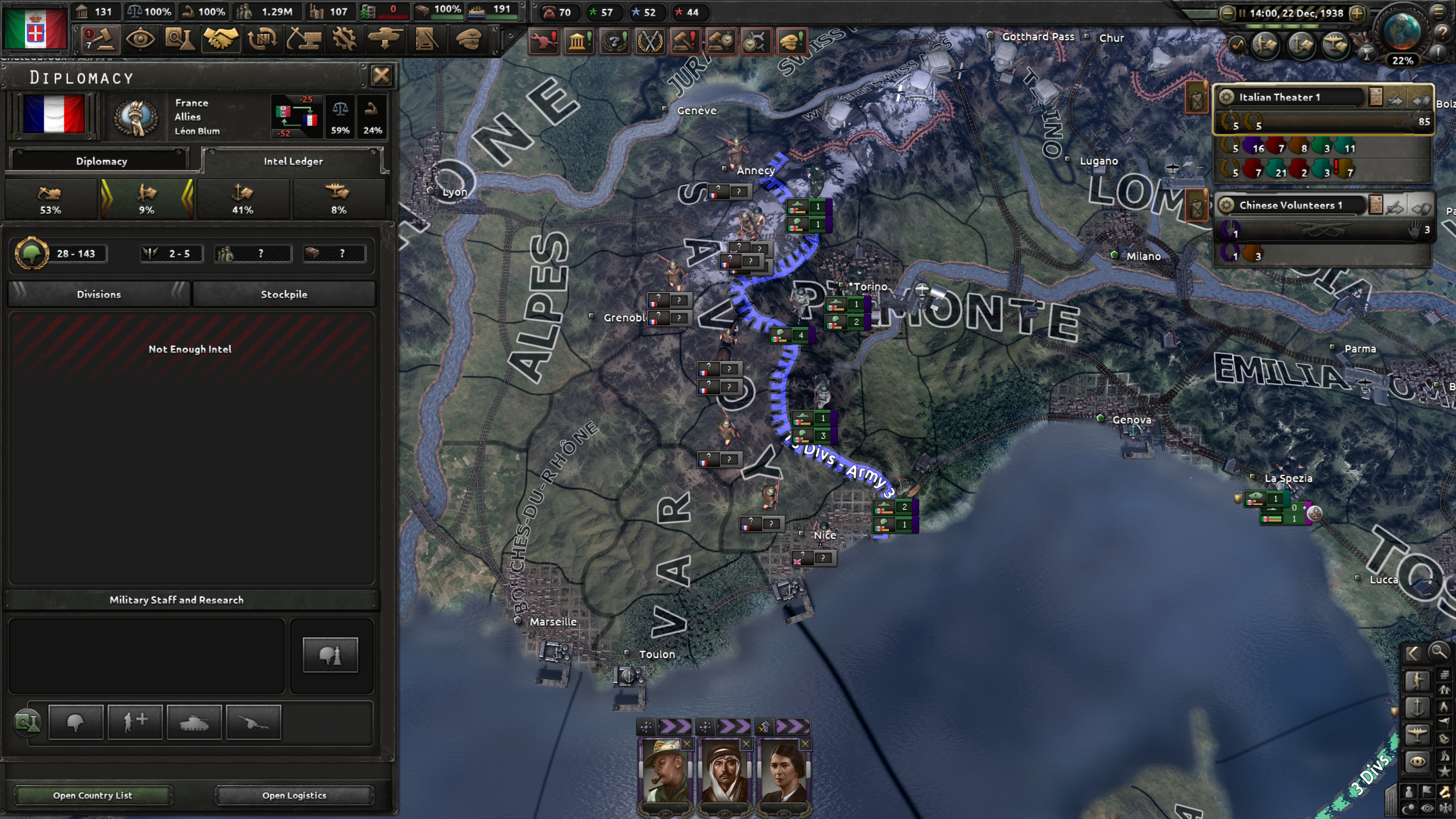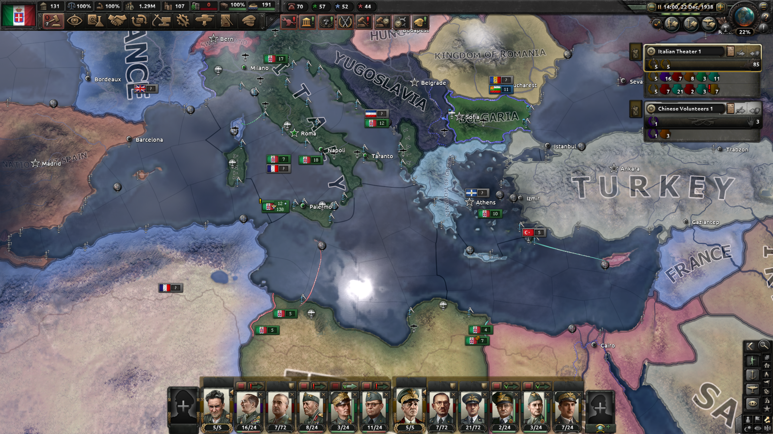 ・ジブラルタルを制圧 ・・・ スペインと同盟し、空軍を飛ばしても良い形にし、チュニス、アルジェ、オーランの港から多段でNavalInvasion攻撃