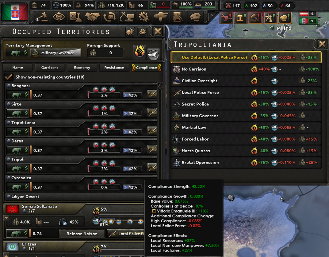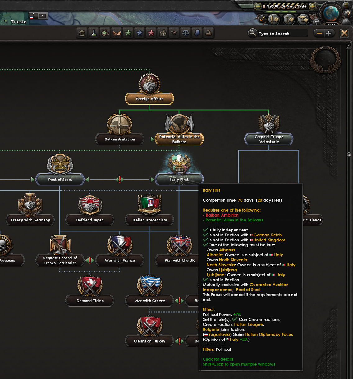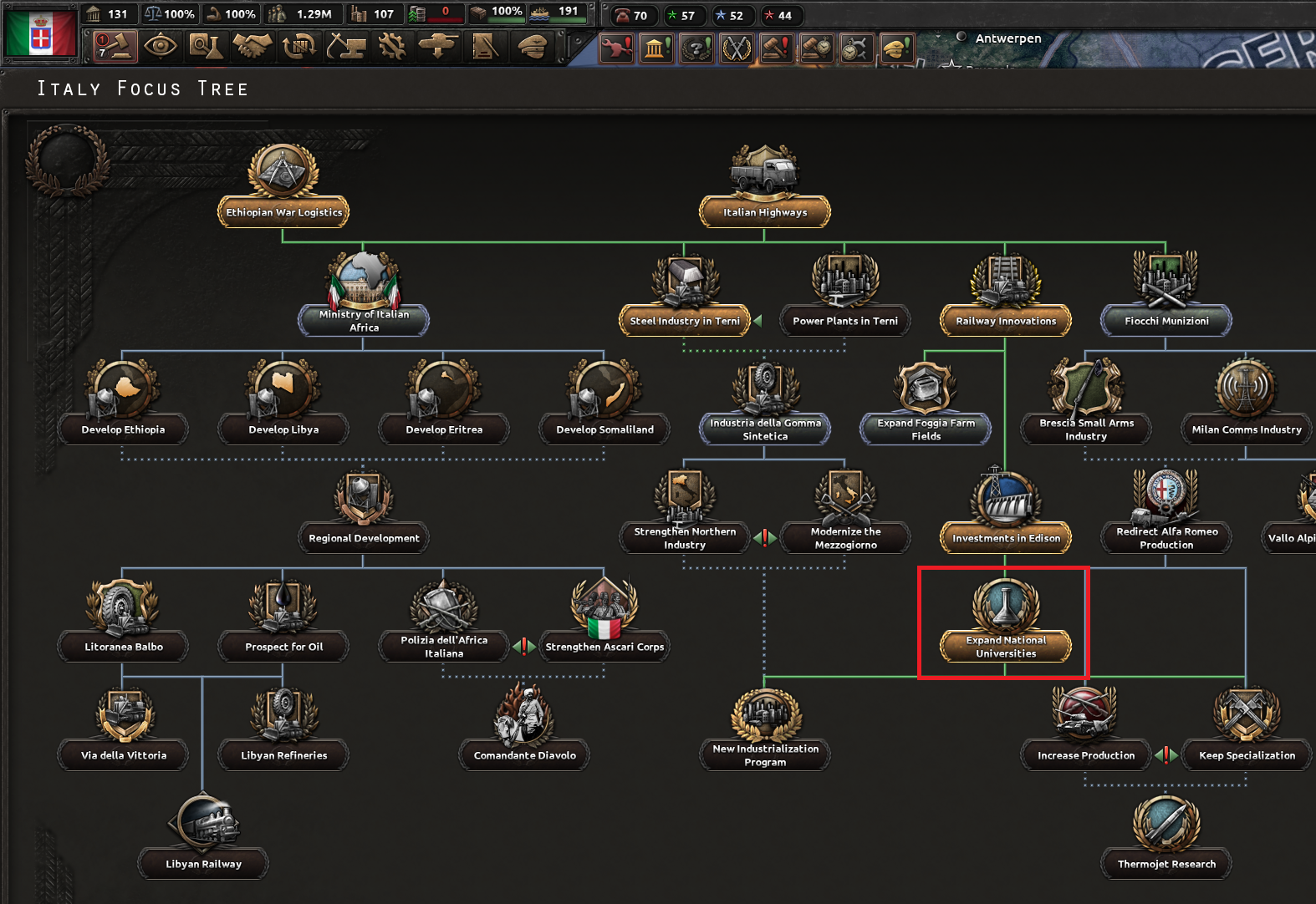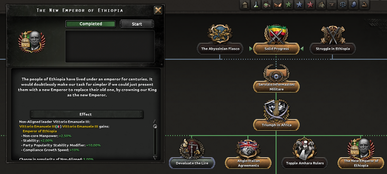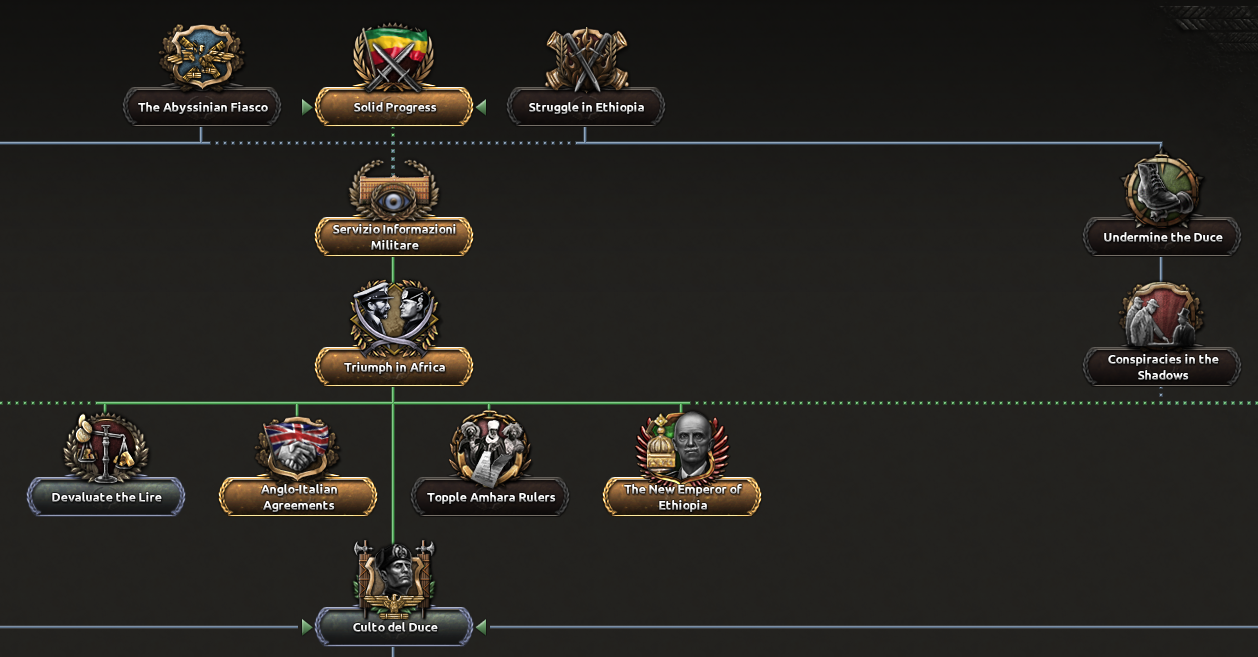 国家方針ツリー(後述)を選べない仕組みになっている国もある。本サイトではイタリア紹介になるが、