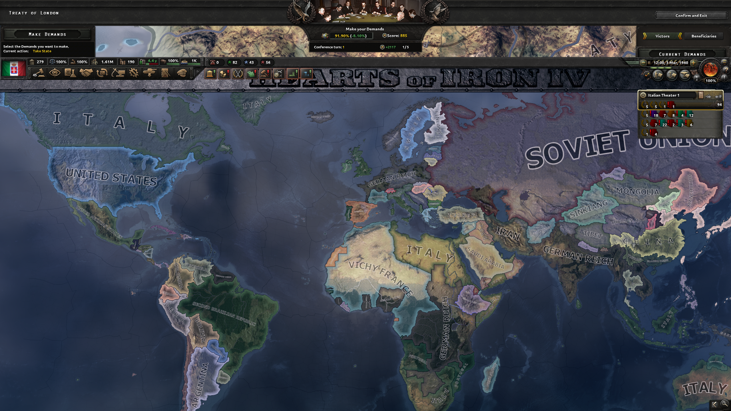 【 世界は収束した。 終了タイムは 1940 Mar 03。 イタリアの勝利である!! 」