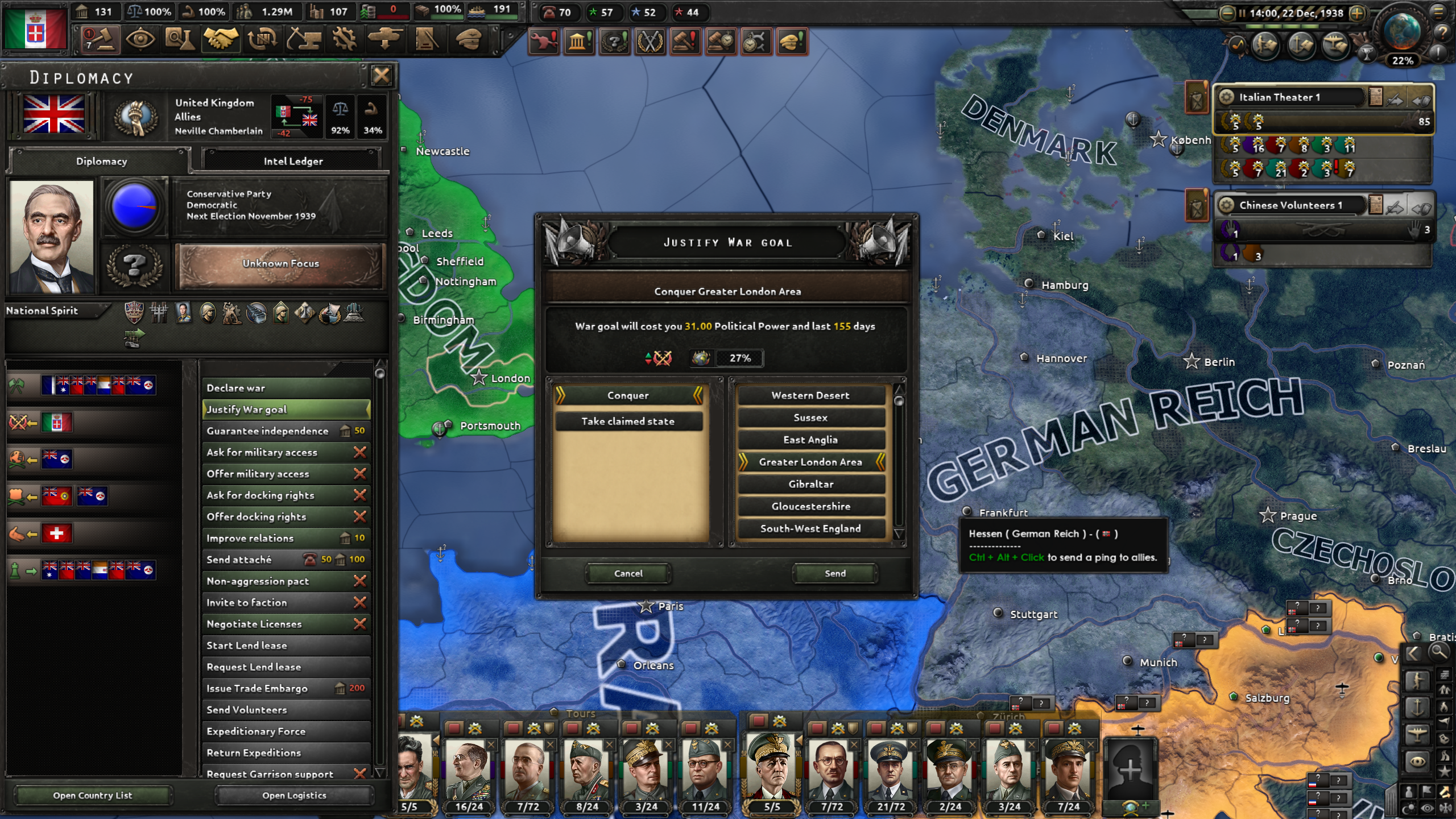 さて、その刻は来た。UKを選択して「Justify War Goal」を押すがよい!