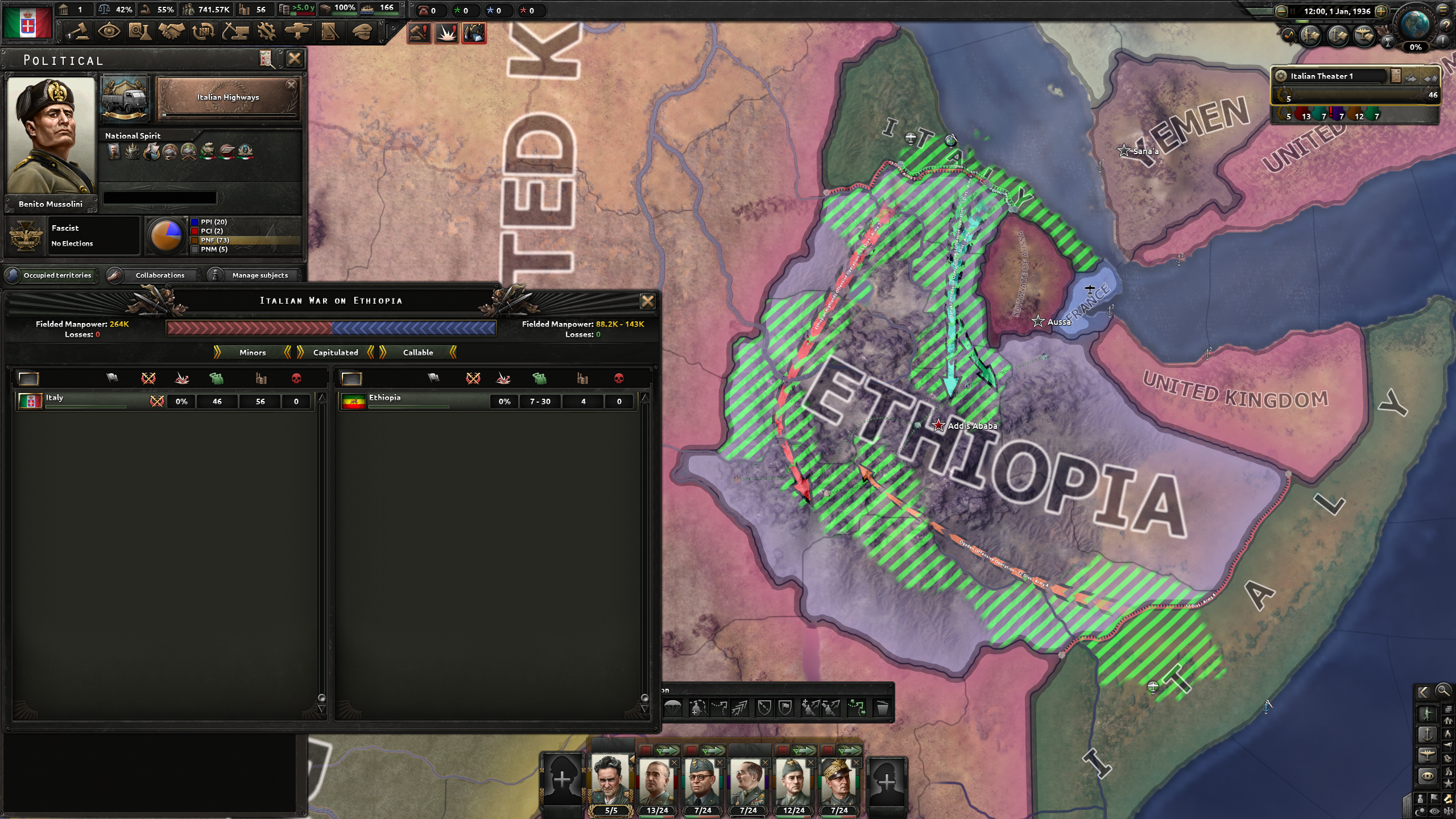 イタリアの場合は、突然ではあるが「エチオピア戦争」が既に発生している状態からの開始となる。
