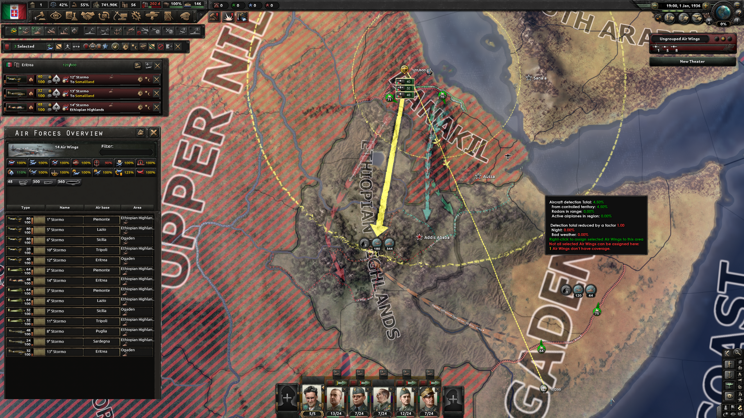 それら空軍を全てこのエチオピア戦線の方に持ってくるようにしよう。