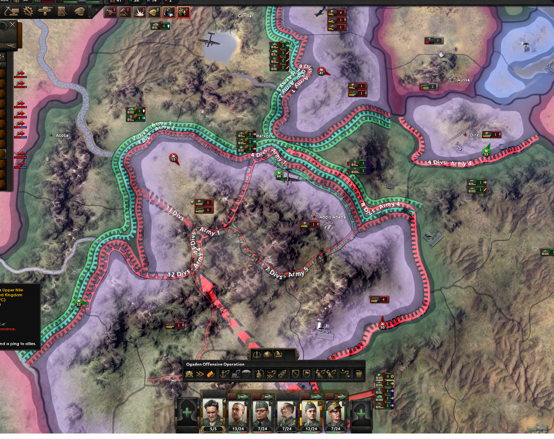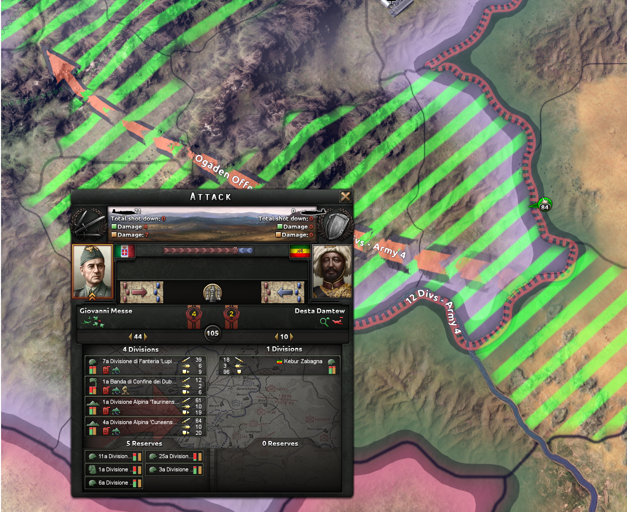 エチオピア戦の場合は、とにかく空軍がほとんど出てこない。なので幾ばくかの空軍がサポートに回れば